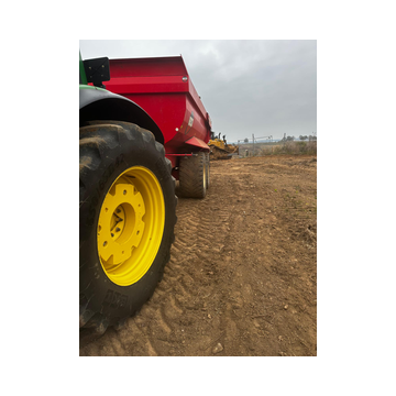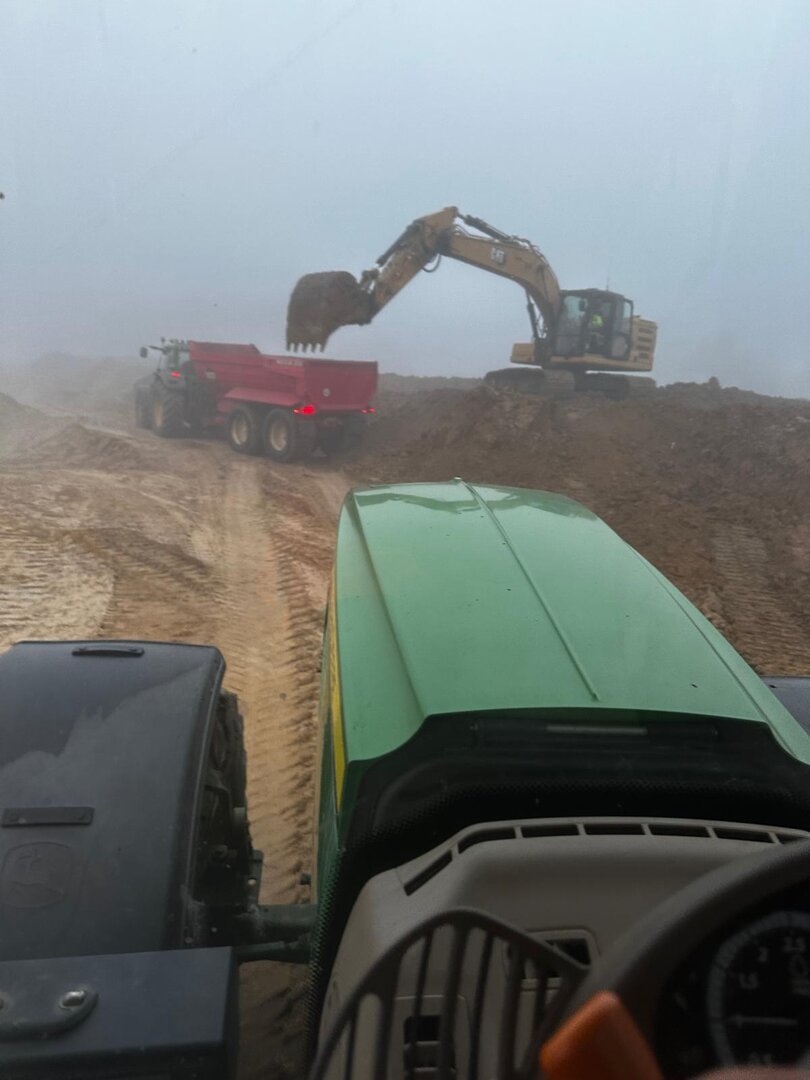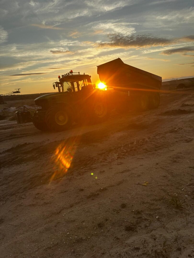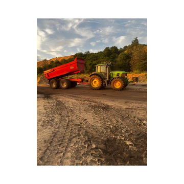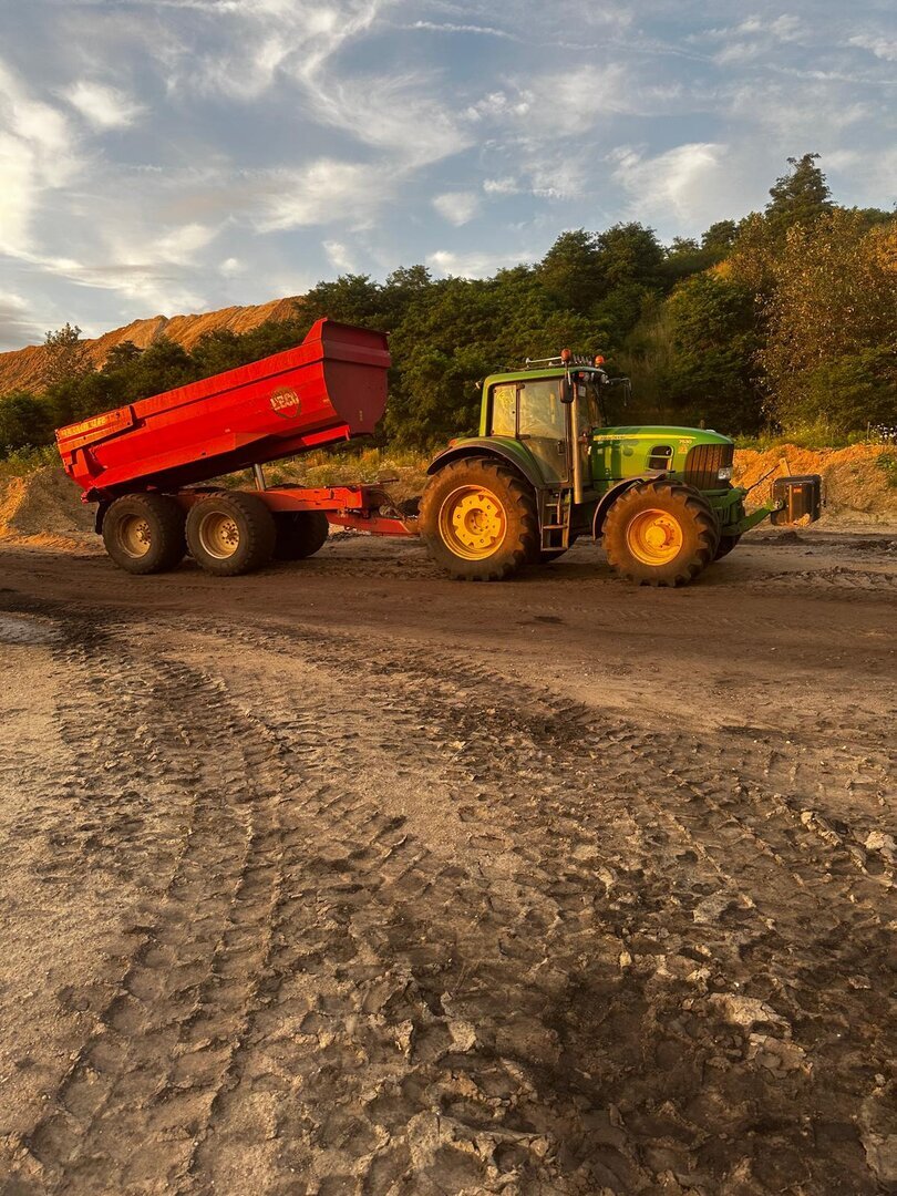 Einen Traktor mit Muldenkippanhänger bringen wir mit,
